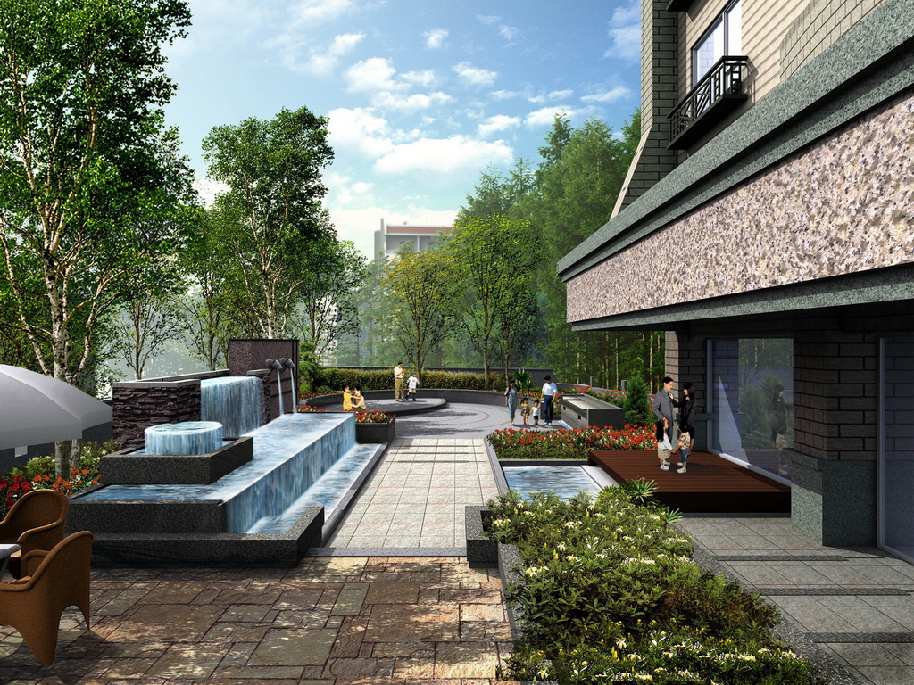 社區景觀工程往往需要大量的綠化與植栽,透過3D表現可以預知將來的景觀實況